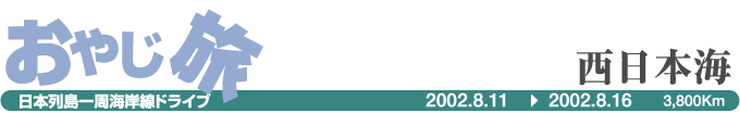 8月15日は、朝6時30分に出発。トラッカーの朝定食を探す。ない。8時40分、「ゆうひパーク」という名前がついている道の駅につく。その場所から見える景色がすばらしい。すぐ下を左側の緑色の半島のトンネルからのびてきている線路。そして大きな静かな海。